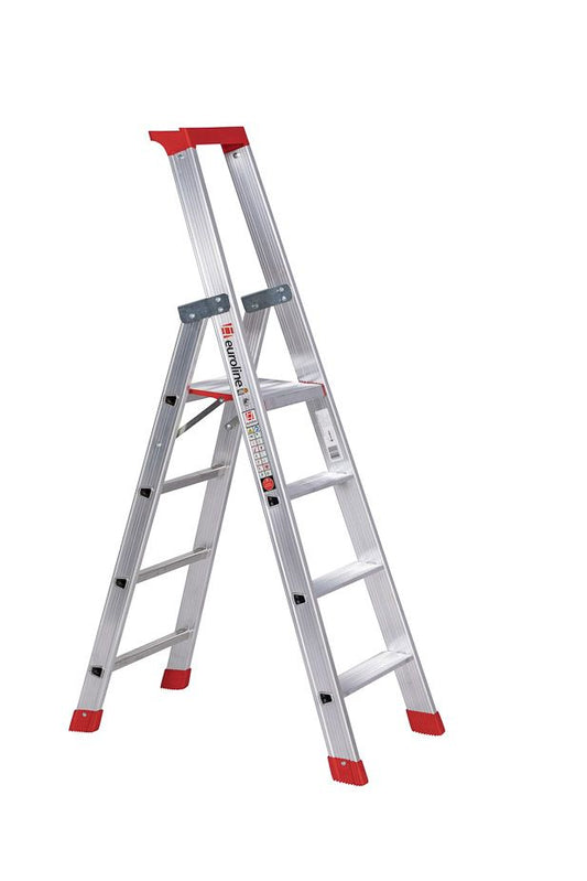 euroline Alu-Stufenstehleiter Nr. 32577 – mit Sicherheitsbrücke & Werkzeugablage für maximale Sicherheit im Einsatz